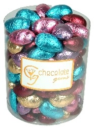 Easter Half Eggs Milk Chocolate 1120g Barrels, and 500g Half Barrels EC161 Barrel 16g Eggs Mixed Foils, 390g each EC516 Large Barrel 16g Eggs Mixed Foils each EG1BU Barrel Half Eggs - Burgundy 1120g ea EG1GO Barrel Half Eggs - Gold 1120g ea EG1LB Barrel Half Eggs - Light Blue 1120g ea EG1MA Barrel Half Eggs - Mauve 1120g ea EG1PI Barrel Half Eggs - Pink 1120g ea EG1XALB Barrel Half Eggs - Burgdy Mix 1120g ea EG1XALP Barrel Half Eggs - Pastel Mix 1120g ea EG5XALP Large Barrel Half Eggs 3kg each
