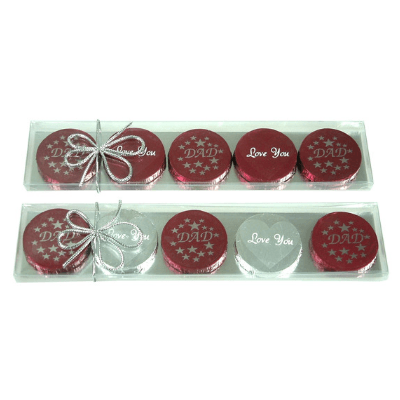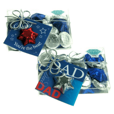 The Chocolate Gems Hugo Collection offers a variety of gift boxed milk chocolate hearts and stars, and dark chocolate star drops, individually wrapped in quality silver, royal blue, red and burgundy foil, along with our popular Freckle products. Our premium-quality couverture chocolate contains a higher percentage of cocoa butter than compound chocolate, adding to its delicious creamy taste. Our gift boxes are ideal for Father’s Day, use in hampers, or as corporate gifts, counter displays, fund raising, weddings or for any special occasion. We can also customise your order to suit your needs.